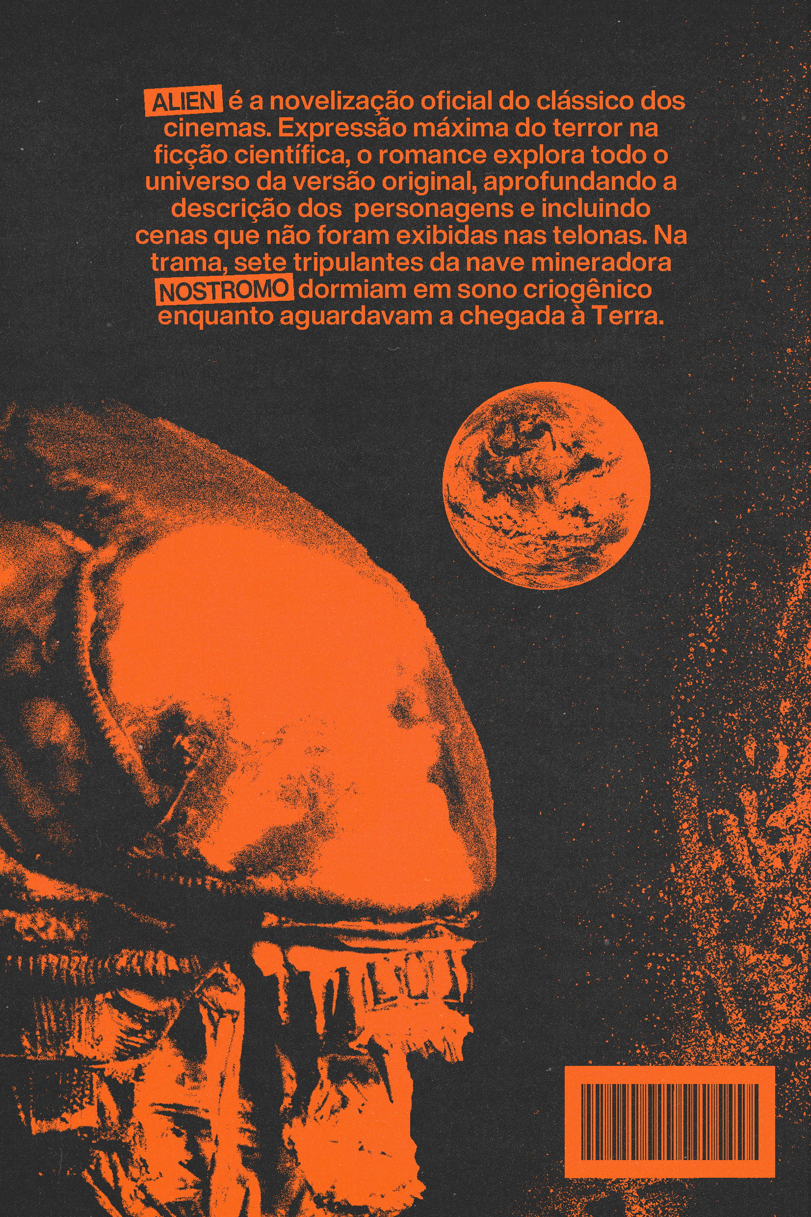 Projeto de capa para o livro "Alien", de Alan Dean Foster, produzido como aprendizado para o curso "Como Criar Capas", ministrada pela designer Giovanna Cianelli na Seiva, que é uma pequena escola, editora e comunidade criativa. No projeto, fiz uma pesquisa em capas sci-fi antigas de domínio público e produzi uma montagem destas, junto com a diagramação para uma possível capa e contracapa do livro.
