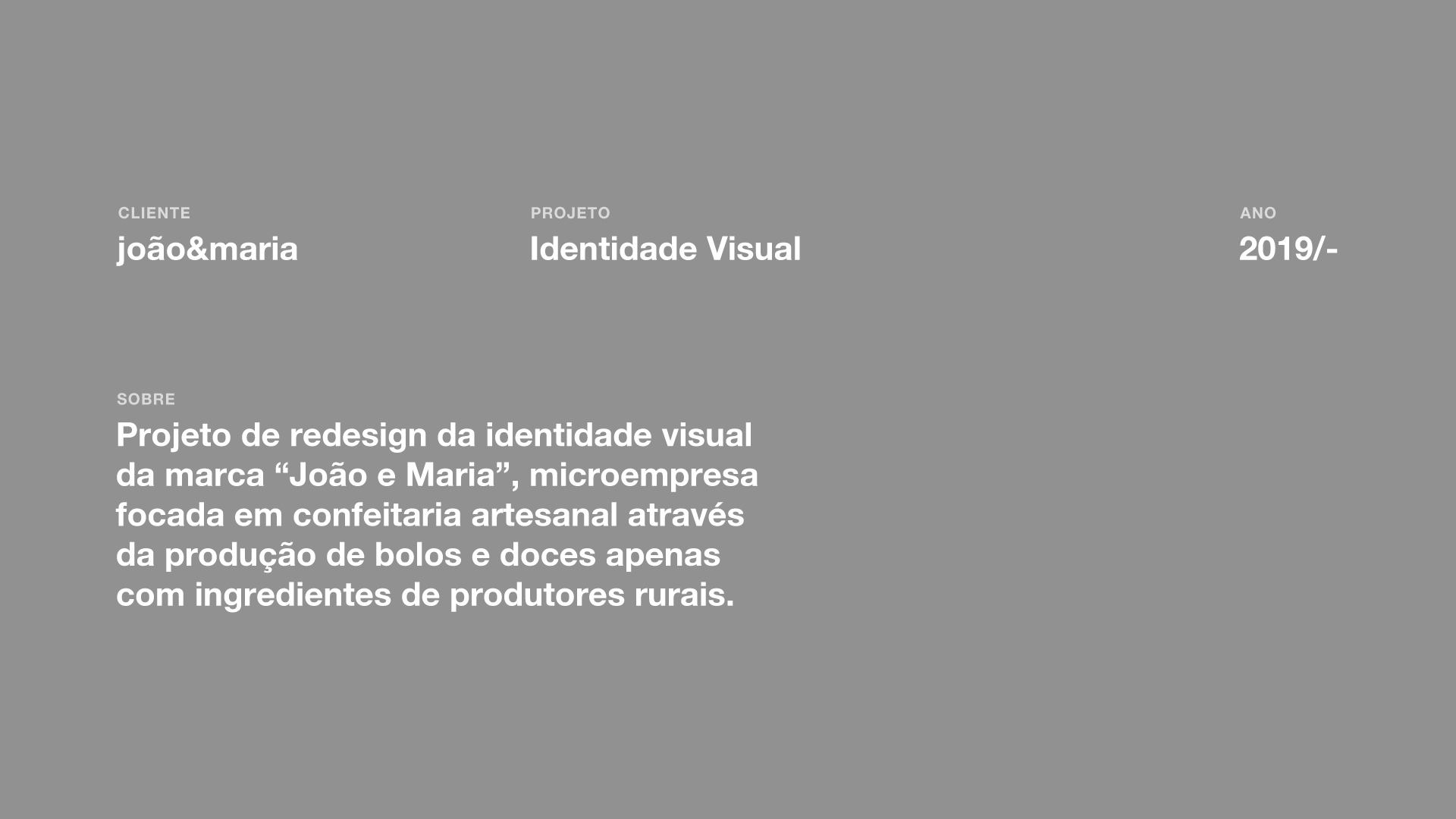 Nova identidade visual para a João&Maria Bakery, confeitaria independente e artesanal focada em produção de bolos e doces apenas com produtos 100% orgânicos e naturais, comprados de produtores locais.